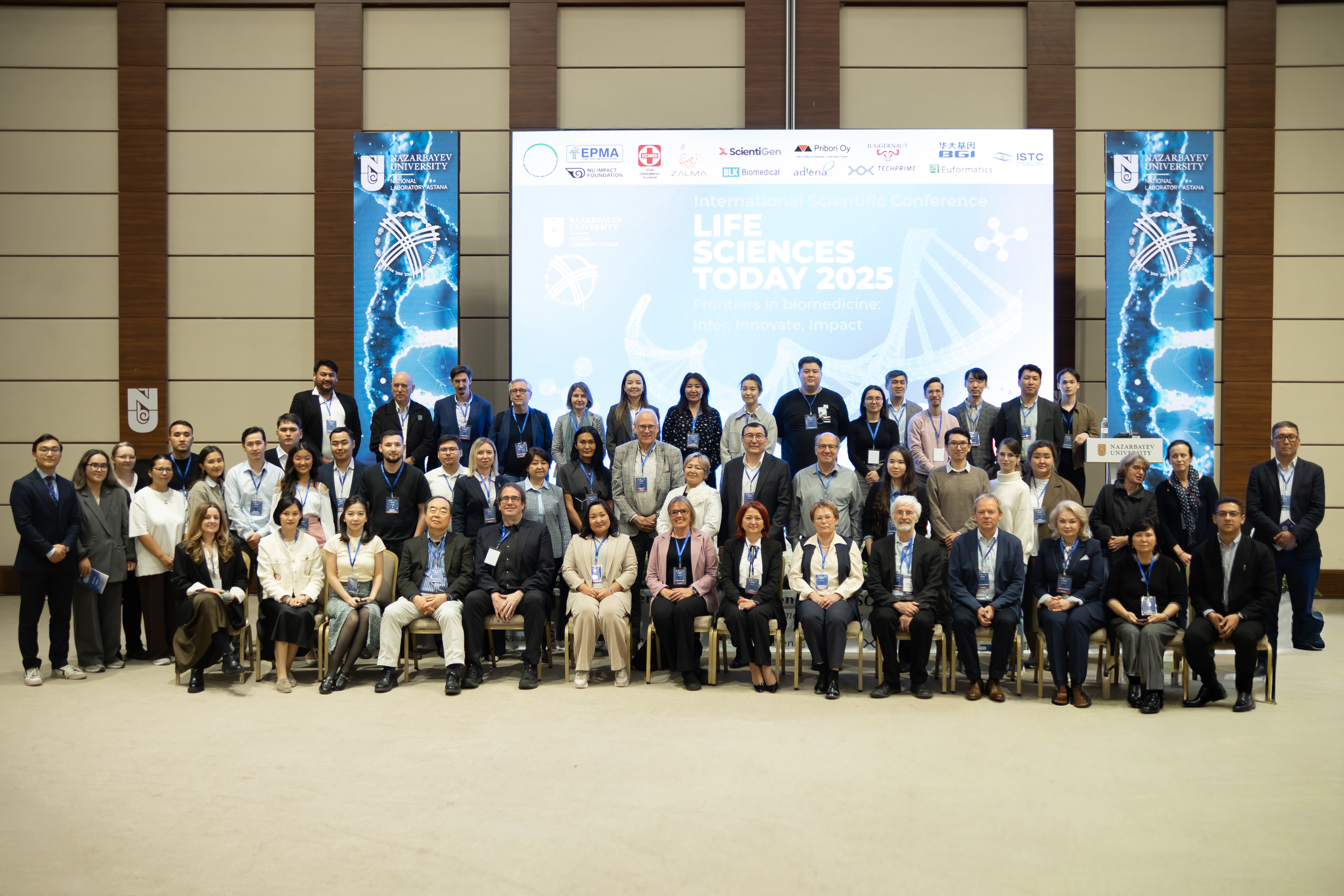 From September 17 to 19, 2025, Nazarbayev University (Astana, Kazakhstan) hosted the international scientific conference Life Sciences Today 2025 – Frontiers in Biomedicine: Infer, Innovate, Impact, dedicated to the 10th anniversary of the National Laboratory Astana (NLA) and the 15th anniversary of the Center for Life Sciences (CLS). The event brought together over 400 participants from the USA, Europe, and Asia, with more than 40 presentations delivered by leading scientists in the field of biomedicine.